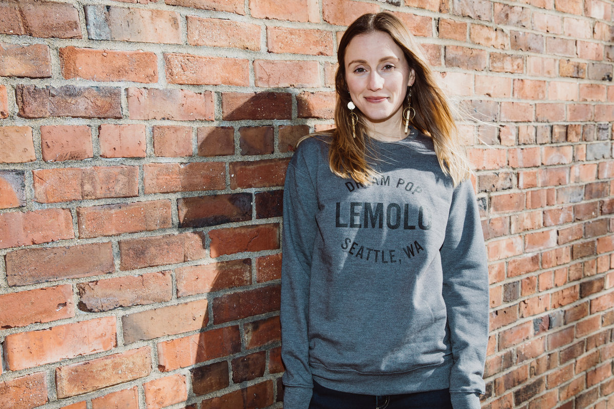 Printed on cozy Tultex Unisex Fleece Crewneck Sweatshirts in charcoal. Designed by Seattle artist Patrick Toney and printed by Indiprints Screen Printing and Design. "Lemolo, Dream Pop/ Seattle, WA". For sizing please visit www.tscapparel.com. Meagan is wearing size XS.